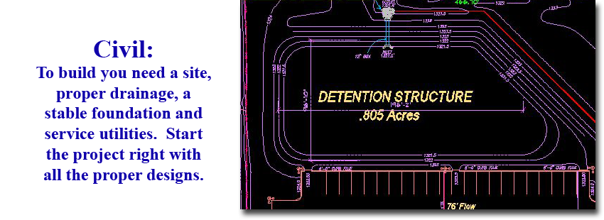 The wide range of educational and project experience allows Weimer Engineering to serve all the engineering design requirements for most any project. This would include initial site development, utility extensions, storm water detention study, foundation design, mechanical HVAC engineering, plumbing engineering, electrical engineering, fire/safety design and final sealed CAD Drawings.