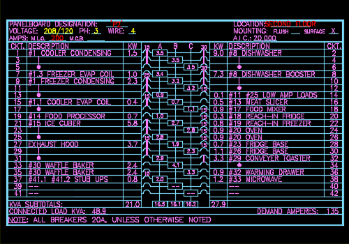 Of less glamour is the power aspect of the electrical engineering design. Experienced builders will recognize that the power distribution hardware, wiring, and installation of electrical systems is a very major cost component. Quality engineering design can hold the costs to a minimum by proper choice of voltages, electrical phasing, usage of properly spaced sub-panels and other techniques learned over the years.